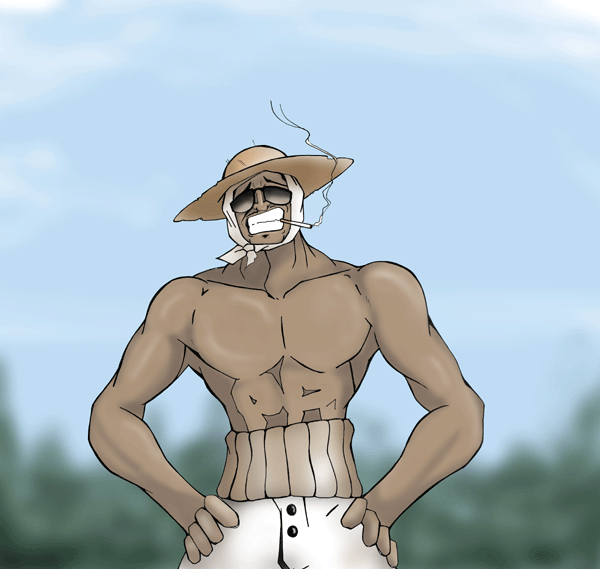 胡散臭い黒人が日本の農家で働くというコンセプトで描いてみました